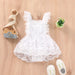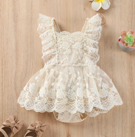 Introducing the adorable Baby Girls Princess Romper, a perfect blend of comfort and style for your little princess. This charming jumpsuit features a beautiful plain floral lace embroidery skirt, adding a touch of elegance to her wardrobe.